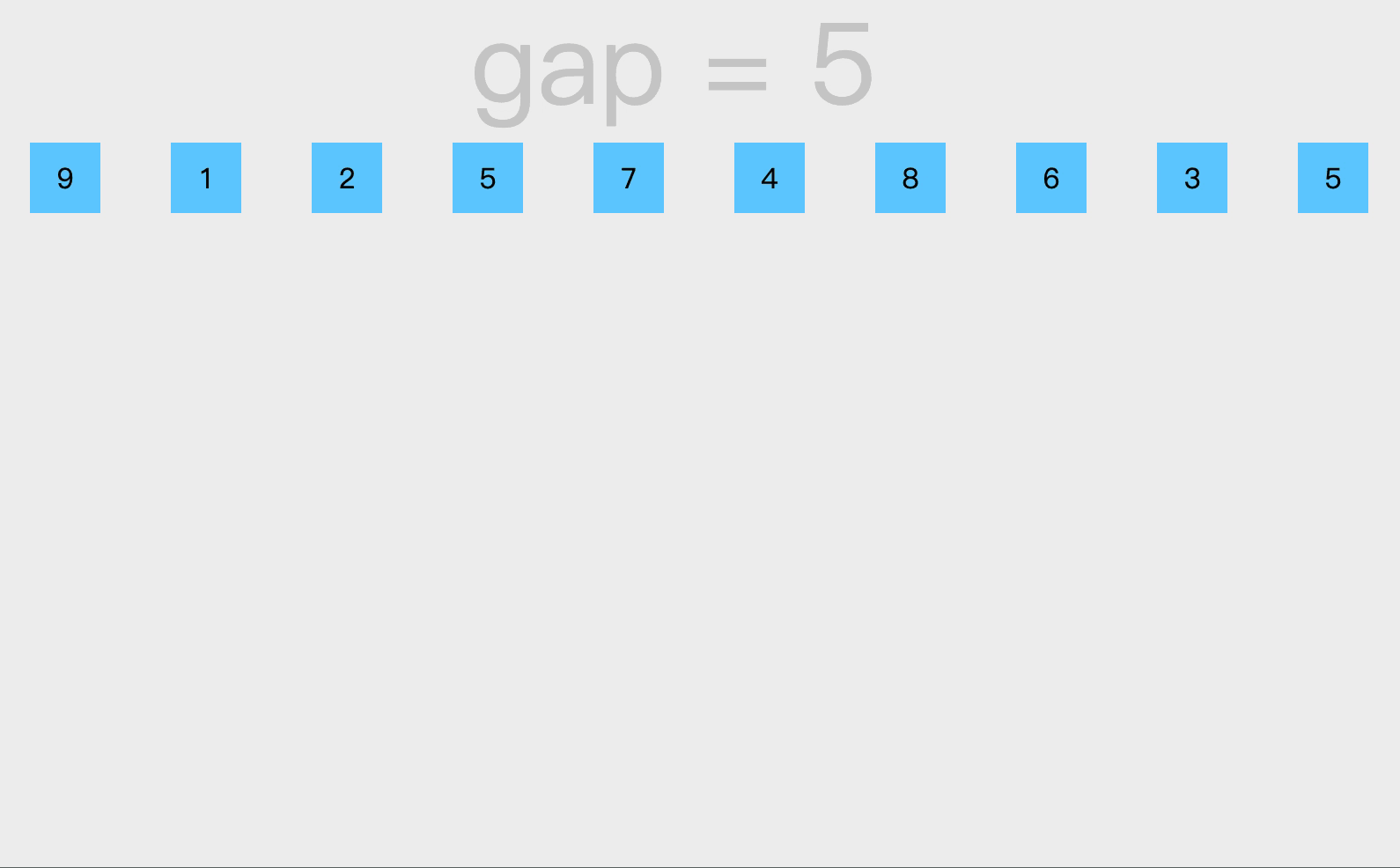 - 先将整个待排记录序列分割成若干子序列,然后分别进行直接插入排序,待整个序列中的记录基本有序时,再对全体记录进行一次直接插入排序。